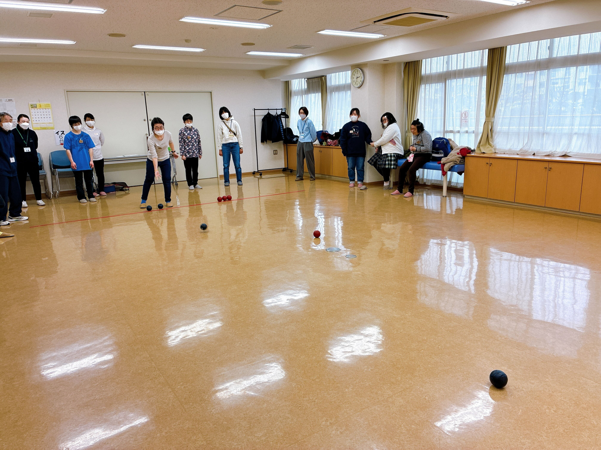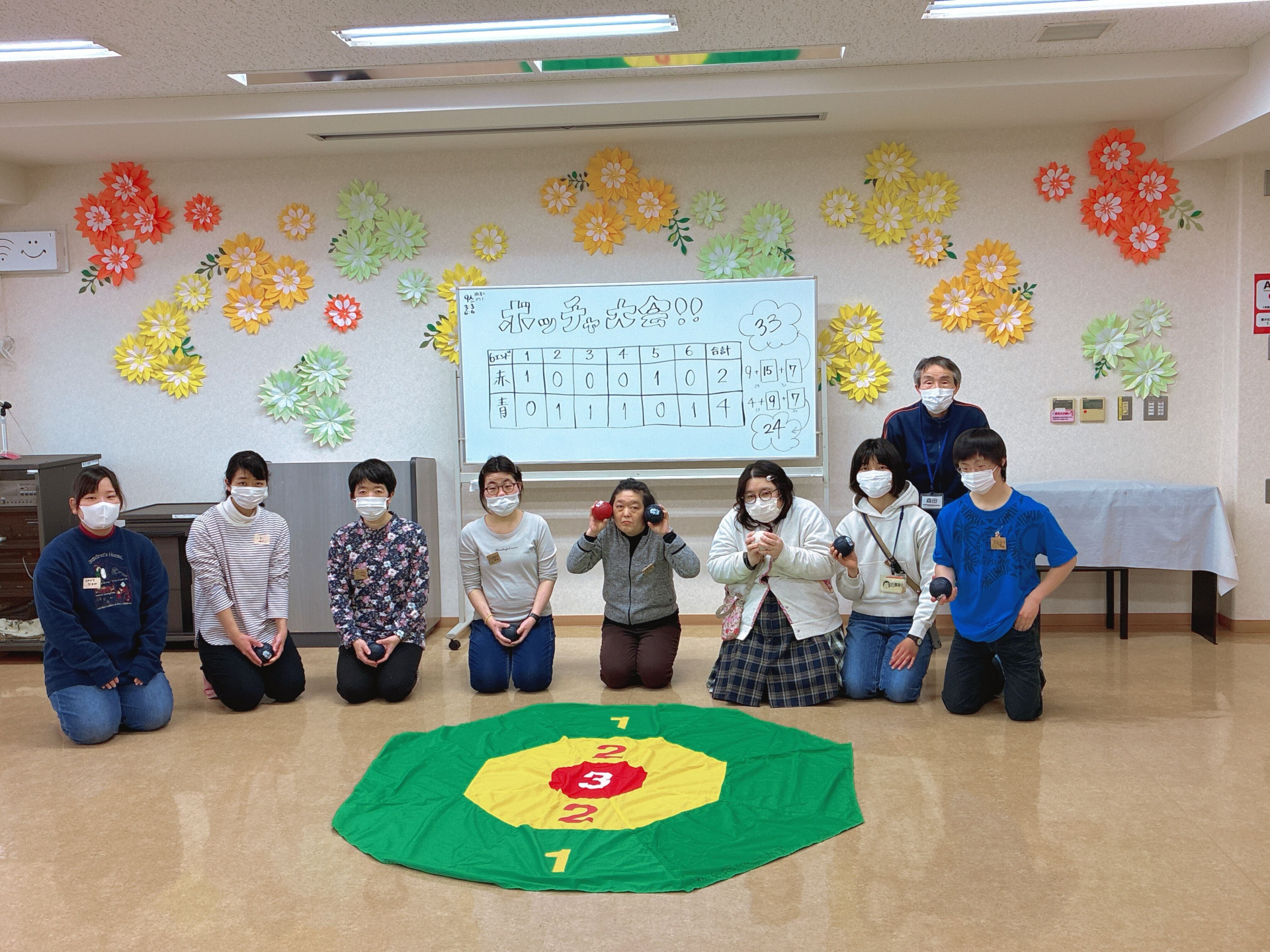 今回は、通常のボッチャに加えて、点数が書かれたシートの上で高得点を狙うゲームにも挑戦しました。