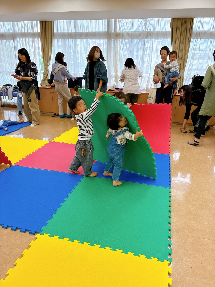 そしてなんと、講座終了後には、かわいい“お手伝い隊”が登場。 マットを一生懸命片付けてくれる姿に、スタッフも思わずほっこり。 ボランティアさんが「ありがとう~!」と声をかけると、 「えへへ!」とちょっぴり誇らしげな表情を見せてくれました。 その姿がとてもかわいらしく、会場がまたひとつやさしい空気に包まれました。