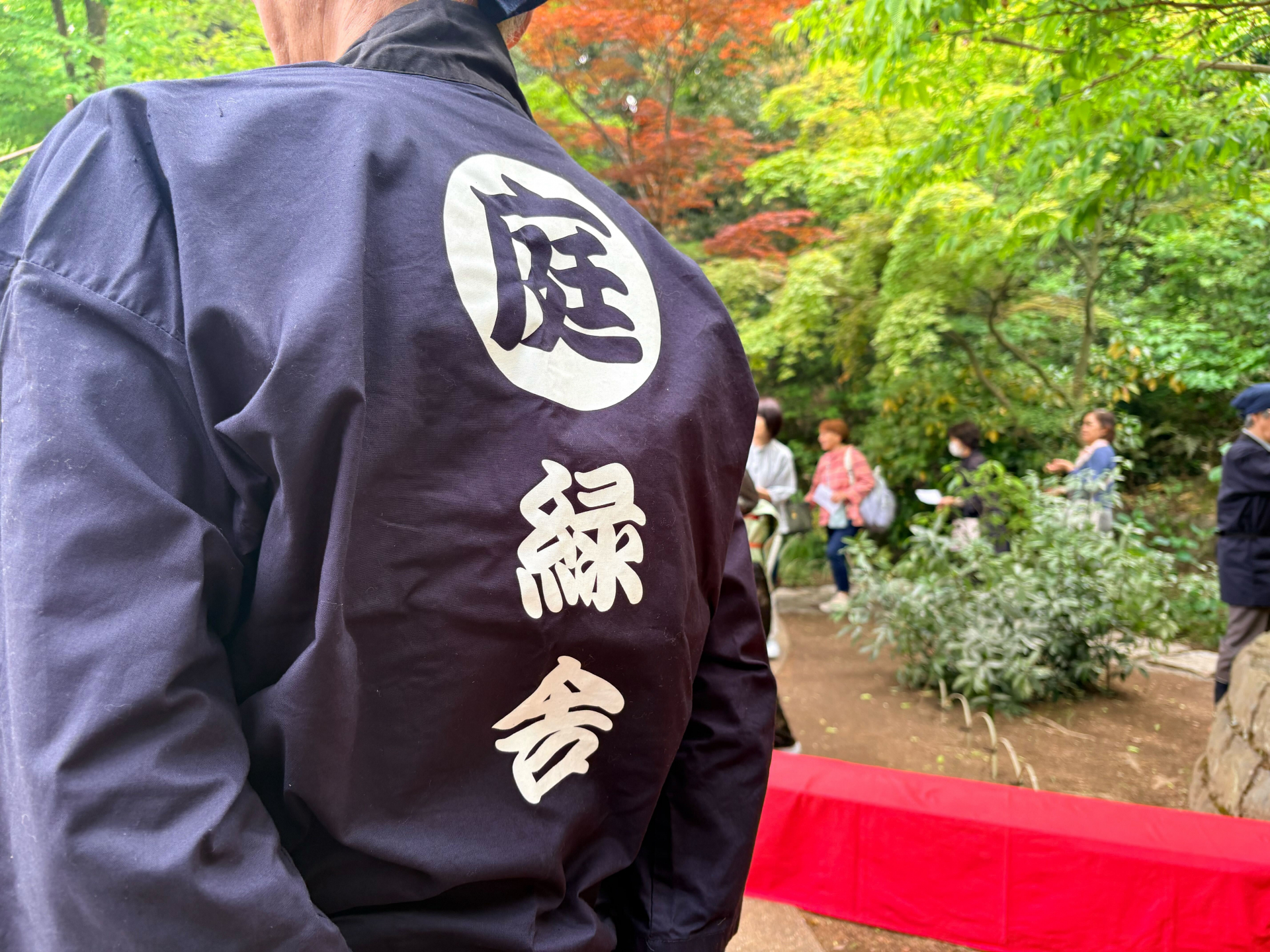 朝は少し曇り空で肌寒さも感じられましたが、会が始まる頃には雲がゆっくりと晴れ、やわらかな日差しが差し込む絶好の野点日和になりました。