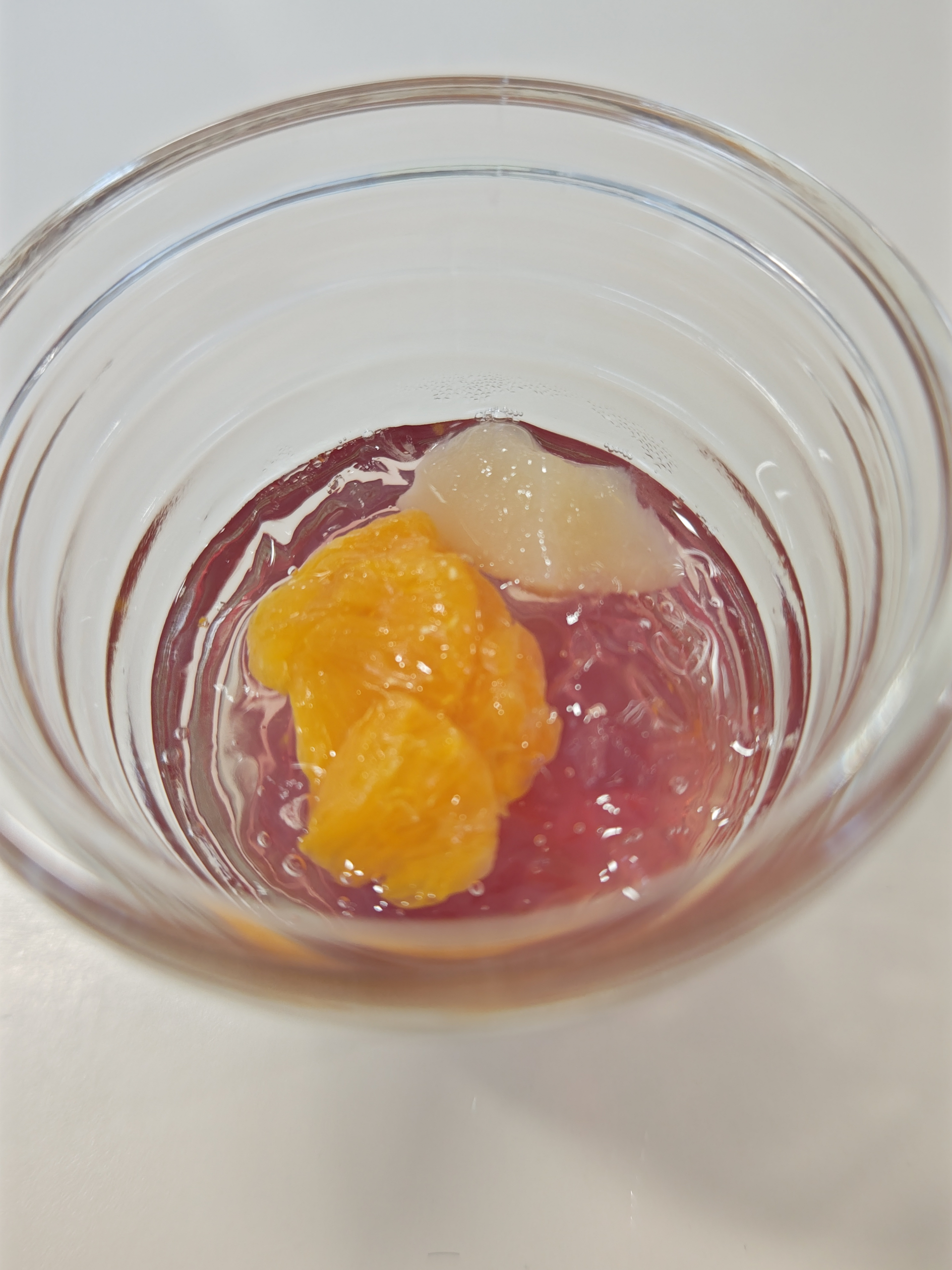 ぶどうゼリーとみかんゼリーをカップに盛り付けました。