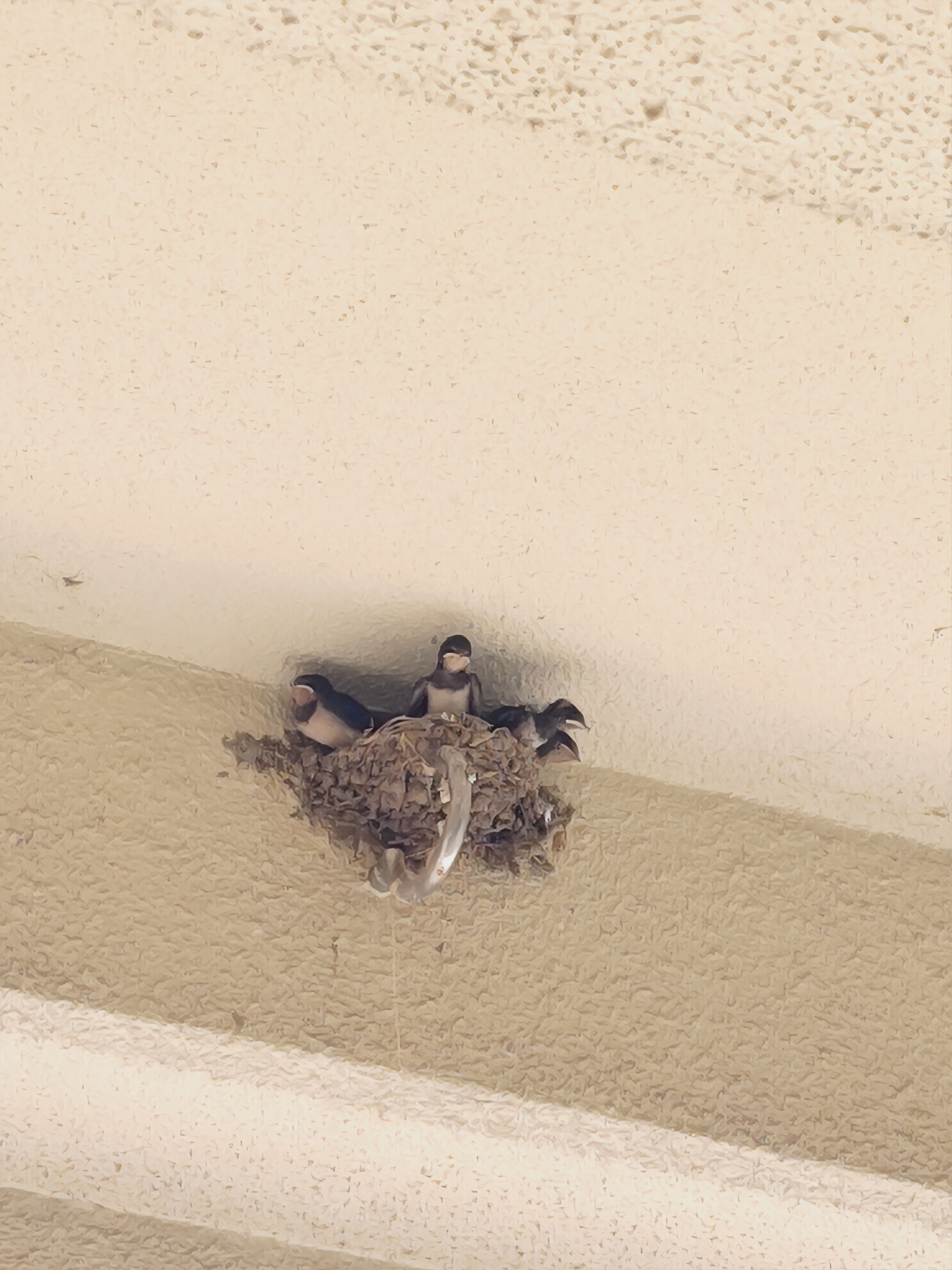 巣から溢れんばかりの雛たちです!!もう見た目は立派な大人ツバメです🐥🐥🐥
