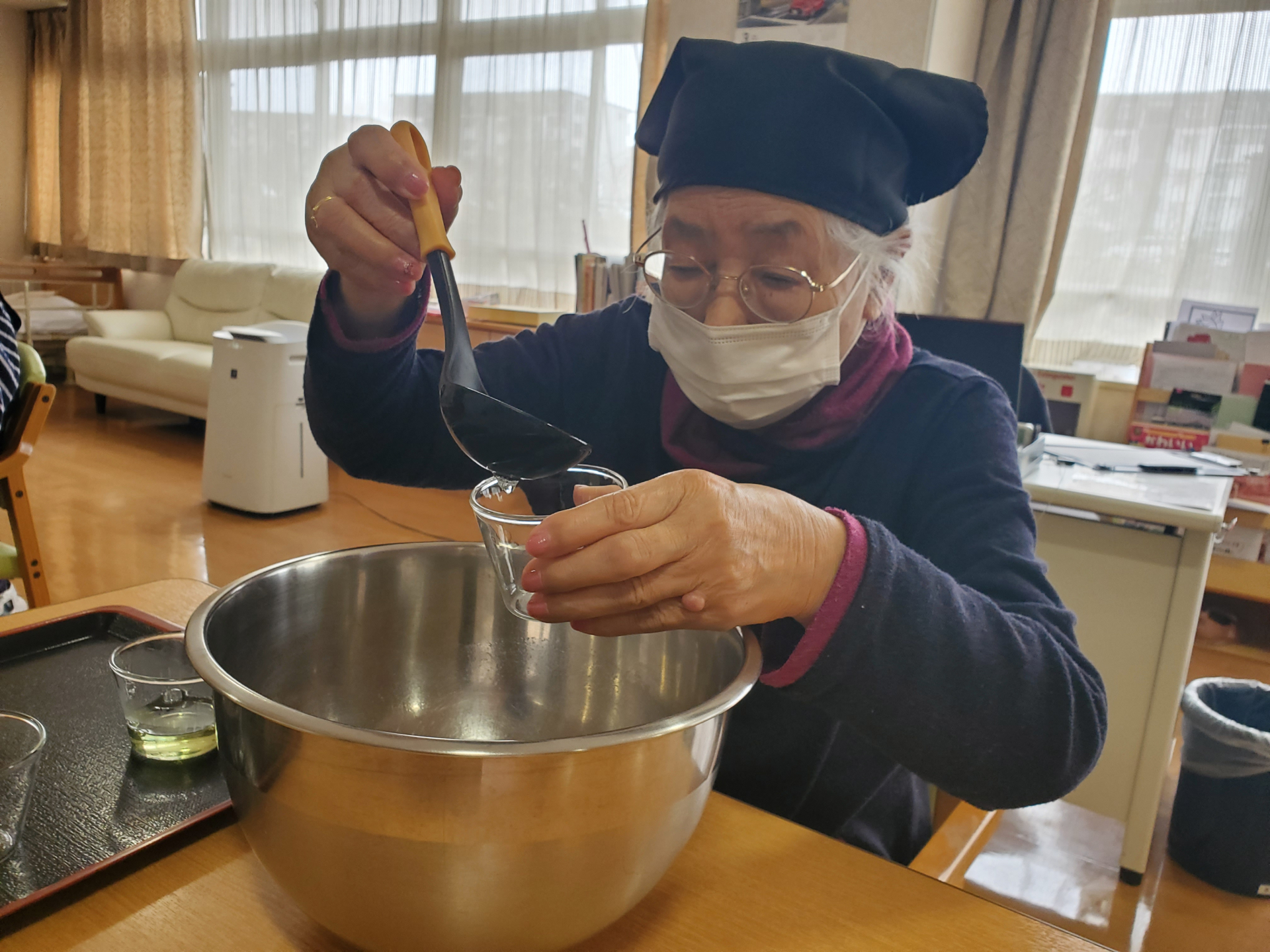 皆様で混ぜてよそって作ります。