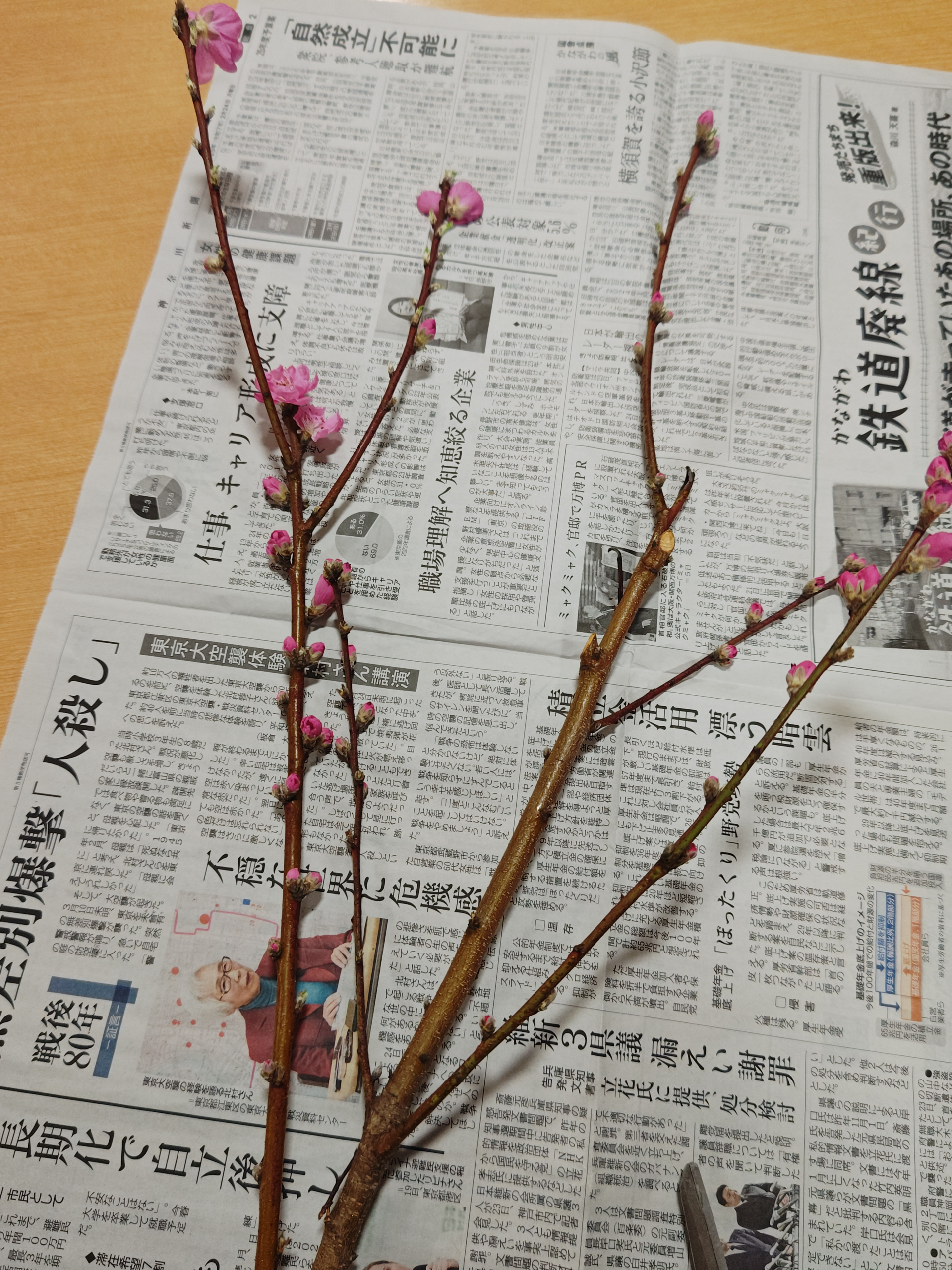 ひな祭りの頃に桃の花を活けフラワーアレンジメントを楽しみました✿