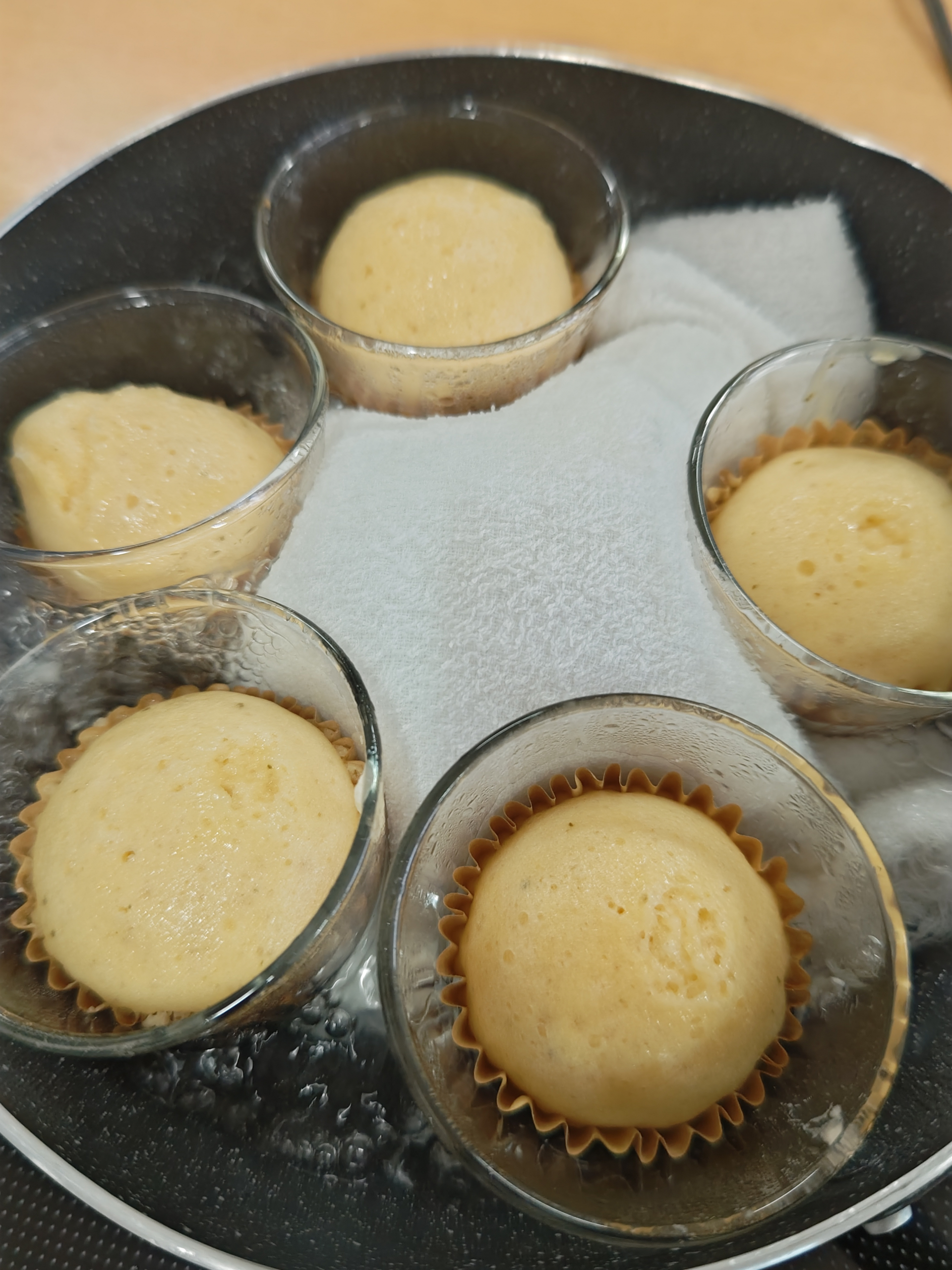フライパンで15分蒸したら、ふわっふわに膨らみ美味しそうに完成しました✿