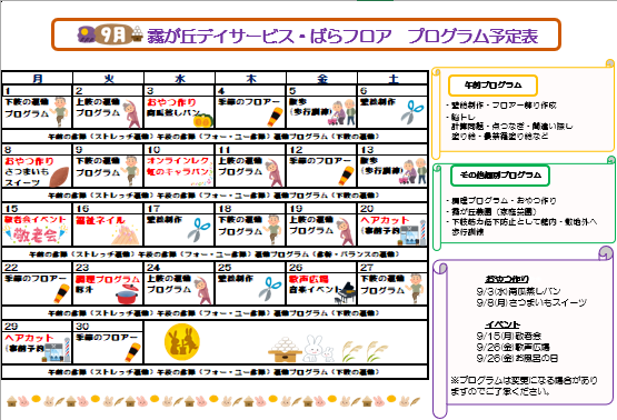 [霧が丘デイ]認知症対応型プログラム表!9月号!