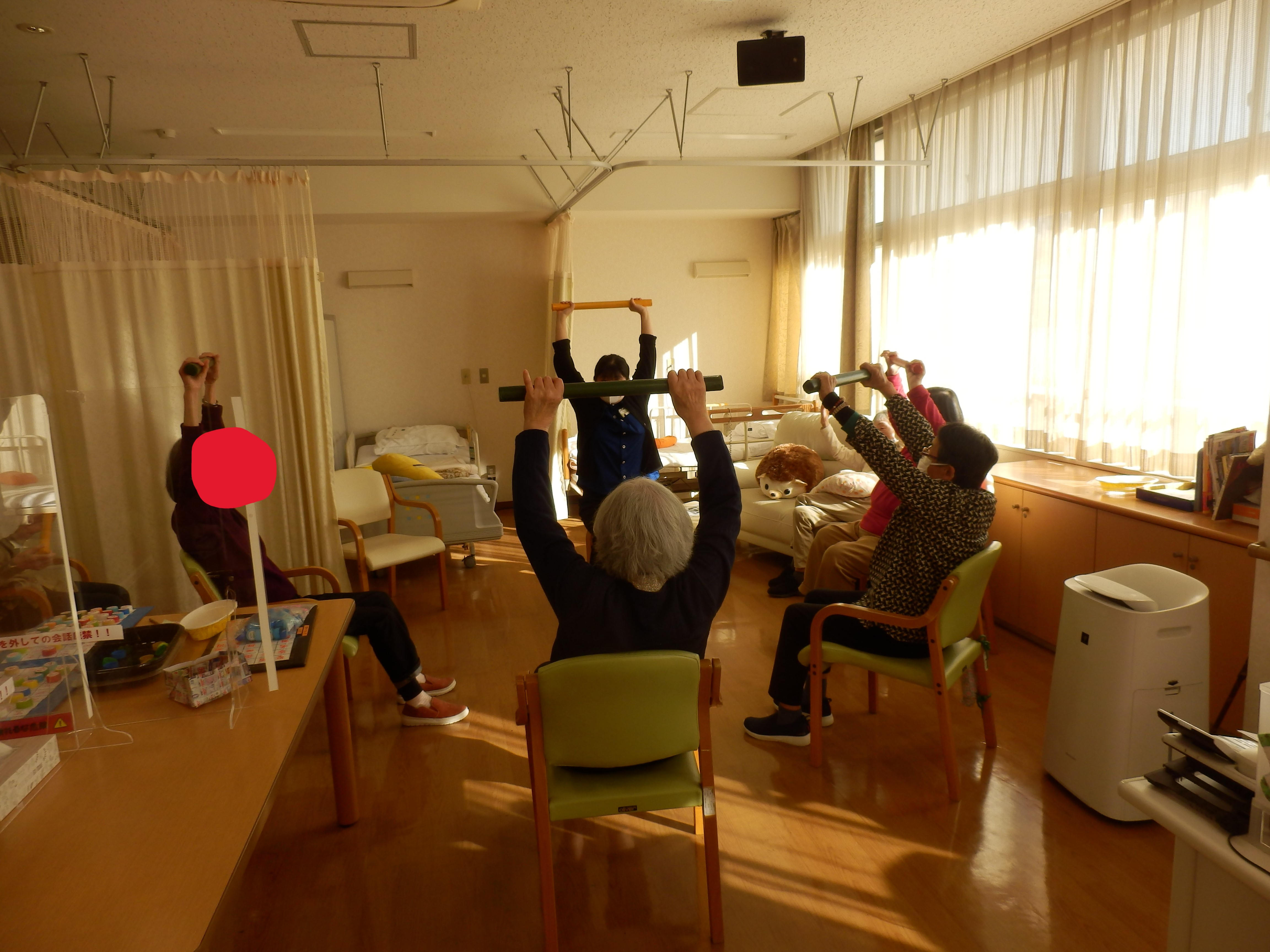 午後のレクレーション時間に棒体操を行いました。