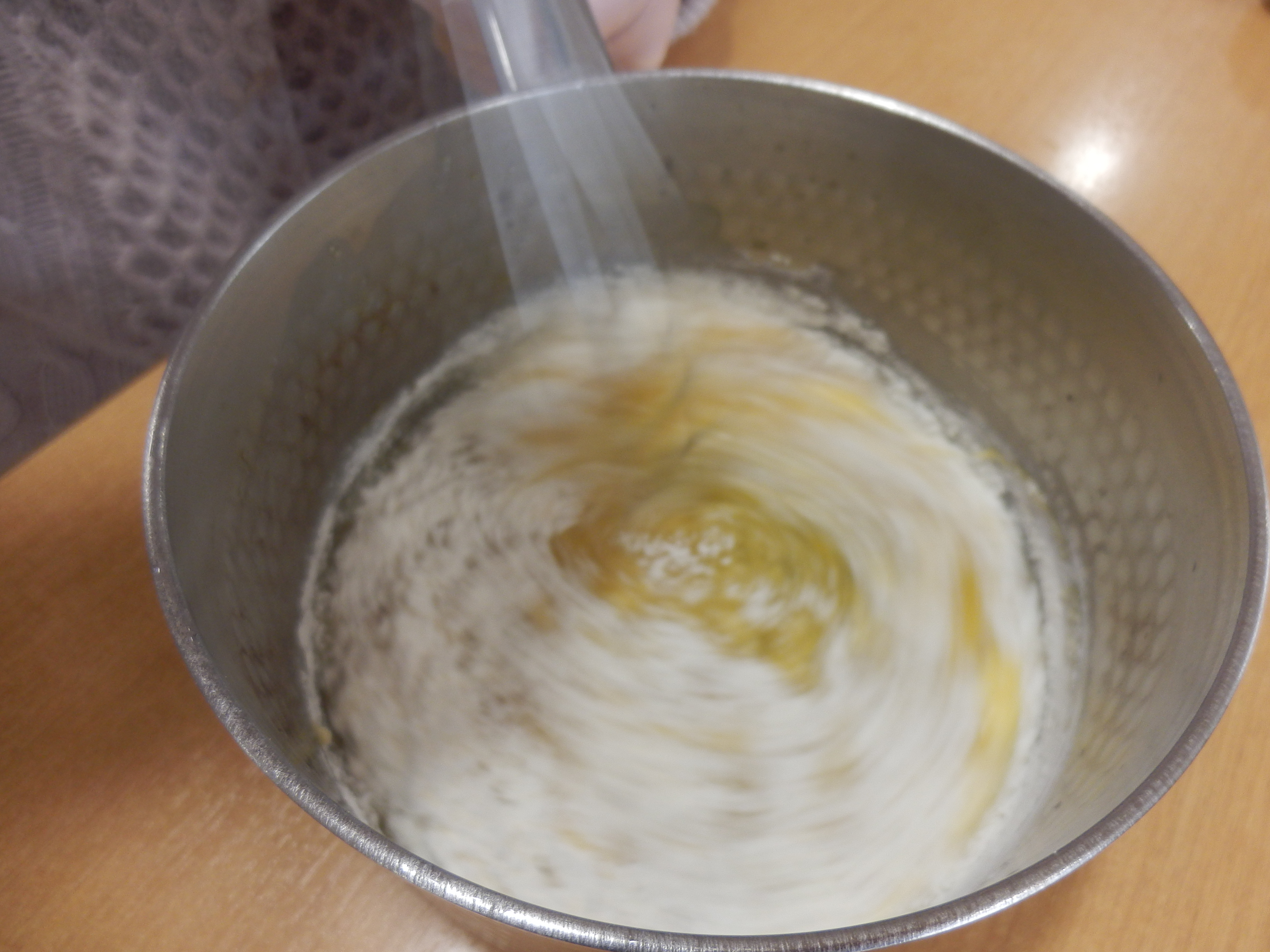 を、沢山泡立て器で混ぜます!力を入れ皆さま一生懸命混ぜていました。