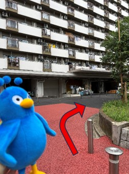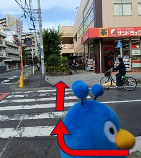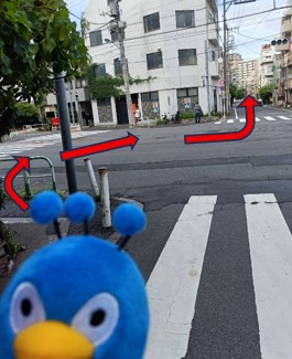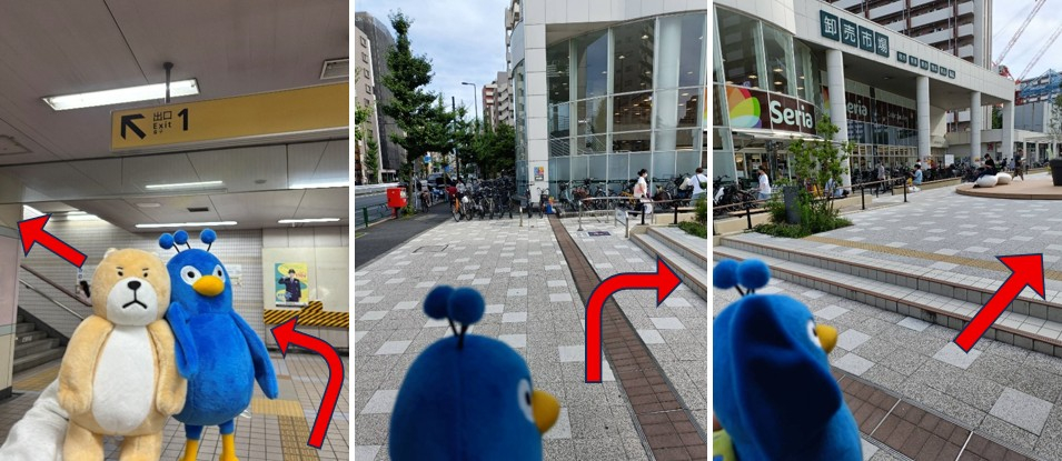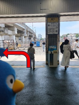 1番出口を出たら左側の階段・エスカレーターで地上へ
