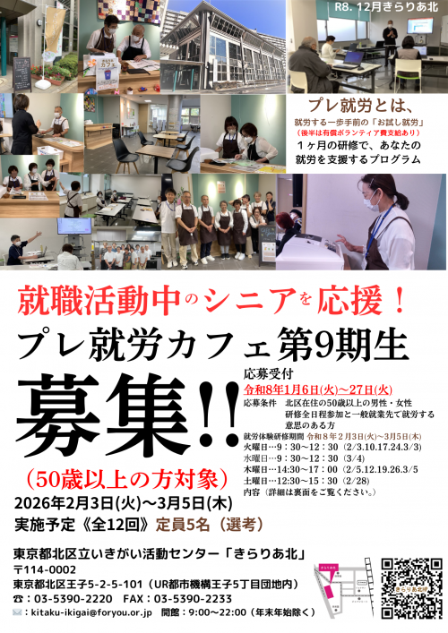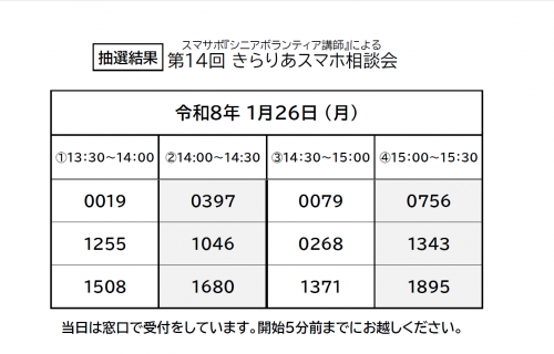 2026.01.18 NEW ✨【ファッションショー出演者募集】KIRARIOR DREAM COLLECTION きらりあドリームコレクション✨ お知らせ 2026.01.18 NEW 【ファッションショーボランティア募集】第5回 きらりあドリームコレクション👗 お知らせ 2026.01.11 【きらりあ花と緑のくらぶ】1月の活動報告です‼ 活動報告 2026.01.11 【1/20・2/17(火)zoom講座】追加募集のお知らせ お知らせ 2026.01.11 第14回きらりあスマホ相談会【1/26(月)】抽選結果 お知らせ 2026.01.10 アート・ものづくりワークショップ&ブログのご案内 お知らせ 2026.01.09 【もう一度パソコン再入門講座】第8回(最終回)開催されました‼ お知らせ 2026.01.08 【きらりあ通信2月号】二つ折りボランティアさん募集中‼ お知らせ 2025.12.25 就労支援プログラム『プレ就労カフェ』第9期生募集!! お知らせ 2025.12.25 【介護予防のお知らせ1月号】 お知らせ 2025.12.25 【きらりあ通信1月号】 お知らせ 2025.12.24 【もう一度パソコン再入門講座第7回目】開催いたしました‼ 活動報告 2025.12.23 【もう一度パソコン再入門講座】第6回開催いたしました‼ お知らせ 2025.12.22 12/22(月)13:30~15:30研修室にてスマホ講座が開催されました。 活動報告 2025.12.22 1/26(月) スマホ相談会 参加者募集スタート✨ お知らせ 1 2 3 … 31