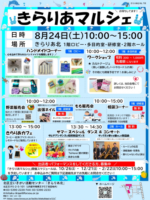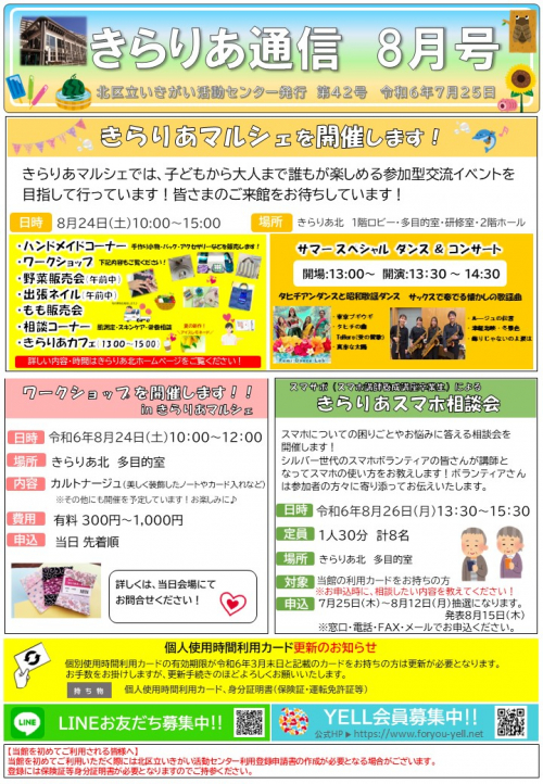 2025.01.25 2/22(土)に「きらりあマルシェ」を開催します‼ お知らせ 2025.01.25 【介護予防のお知らせ2月号】 お知らせ 2025.01.25 【きらりあ通信2月号】 お知らせ 2025.01.23 「プレ就労カフェからの就労・社会参加」プレ就労カフェ7期生募集中です!! お知らせ 2025.01.18 1/25(土)10:00~12:00 採れたて野菜販売会を開催します!! お知らせ 2025.01.18 きらりあ花と緑のくらぶ1月活動報告 活動報告 2025.01.16 【きらりあ通信2月号折り作業ボランティアを募集します‼】 お知らせ 2025.01.14 第6回きらりあスマホ相談会(1/27(月)) 抽選結果 お知らせ 2025.01.14 「アート・ものづくり体験」ワークショップinきらりあ北を開催します!! お知らせ 2025.01.14 【募集】大和ライフウィズ個別相談会を1月16日(木)に開催します! お知らせ 2025.01.11 【当選発表】1/21・2/18「初めての人のためのZoom講座」抽選結果のお知らせ! お知らせ 2025.01.05 初開催★年末イベント!!④「健康体操」 活動報告 2025.01.05 初開催★年末イベント!!③「正月飾りを作ろう」 活動報告 2025.01.05 初開催★年末イベント!!②「年末年忘れカフェ」 活動報告 2025.01.05 新年のご挨拶 就労支援 1 … 13 14 15 16 17 … 30