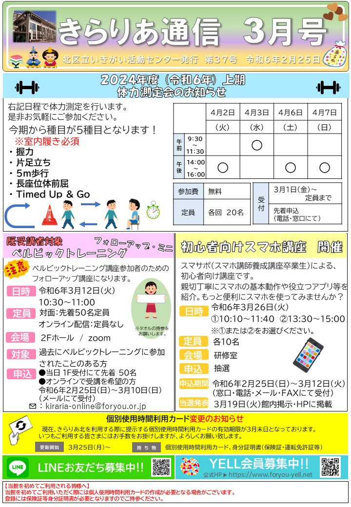 2024.02.25 お知らせ きらりあ通信3月号 Tweet シェアする きらりあ通信3月号を発行しました! きらりあ通信では、講座開催のお知らせや就労に関するお役立ち情報、求人情報等を掲載しています。 前の記事 2024.02.25 お知らせ 介護予防のお知らせ3月号 次の記事 2024.02.17 お知らせ ~春よ来い「きらりあ花と緑のくらぶ」2月活動報告~ 一覧へ戻る