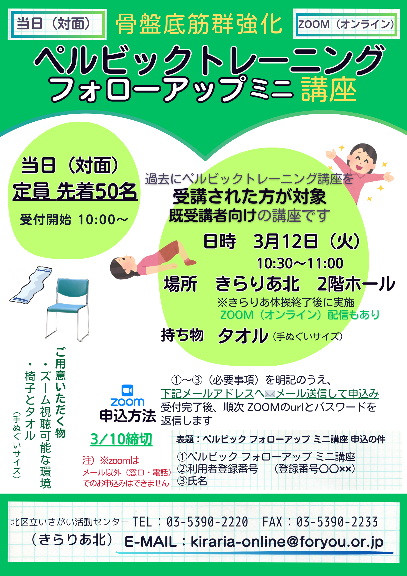 3月12日(火)「きらりあ体操」修了後に2階ホールにて行います。