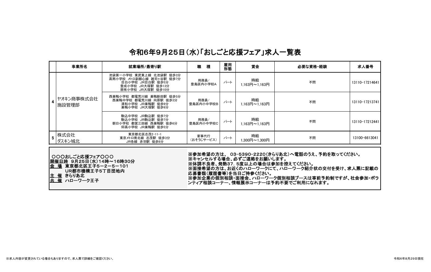 【まもなく開催!】9/25(水)開催!おしごと応援フェア(14:00~16:30※受付終了16:00)