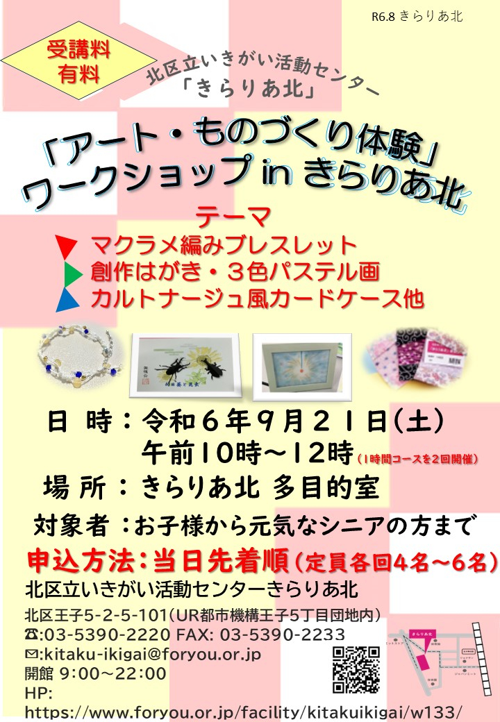 【9月21日(土)秋のイベント「アート・ものづくり体験」ワークショップのお誘い】