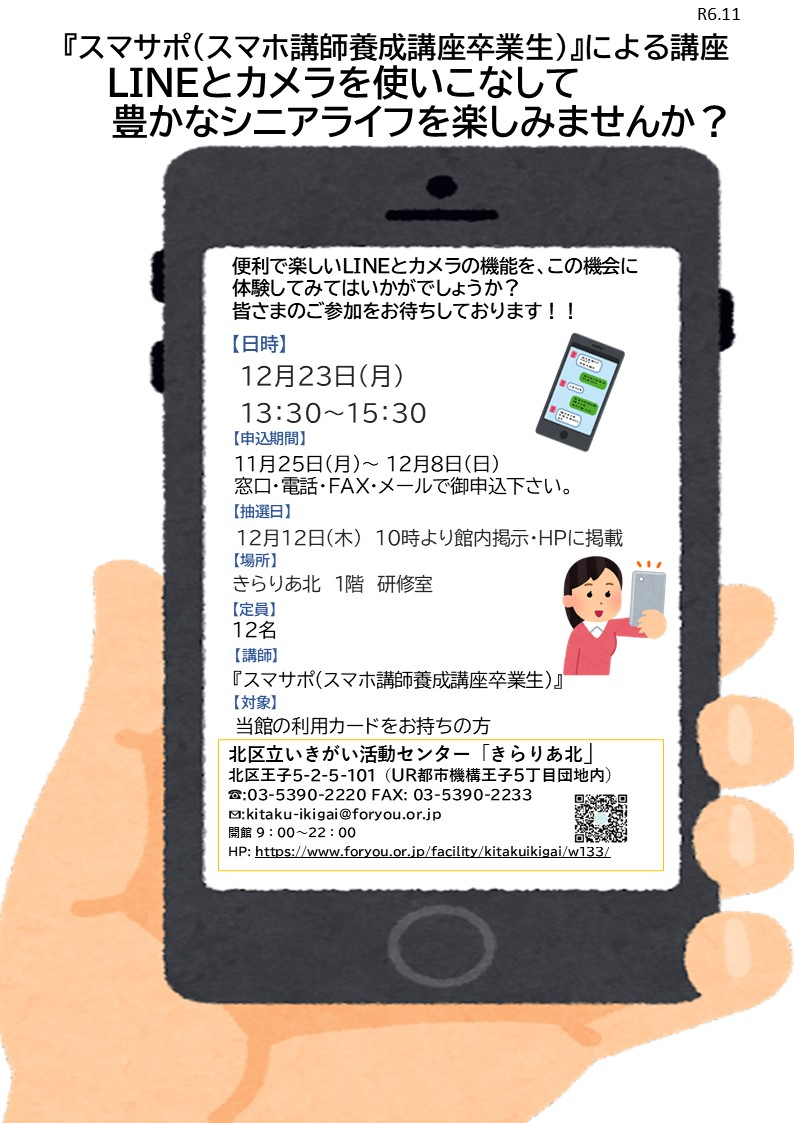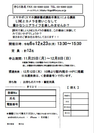 【12/23開催】きらりあスマホ講座のお知らせです!