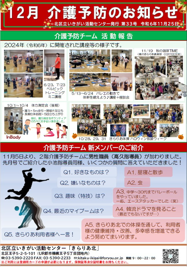 2024.11.25 お知らせ 【介護予防のお知らせ12月号】 Tweet シェアする 【介護予防のお知らせ12月号】 介護予防のお知らせ12月号を発行しました。 前の記事 2024.11.26 お知らせ きらりあ通信折ボランティア作業ありがとうございました‼ 次の記事 2024.11.25 お知らせ 【きらりあ通信12月号】 一覧へ戻る