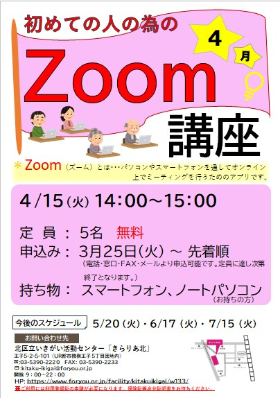 ビデオ通話Zoomに興味があり、60歳以上(区内在住or在勤)の方、気軽に体験してみませんか?