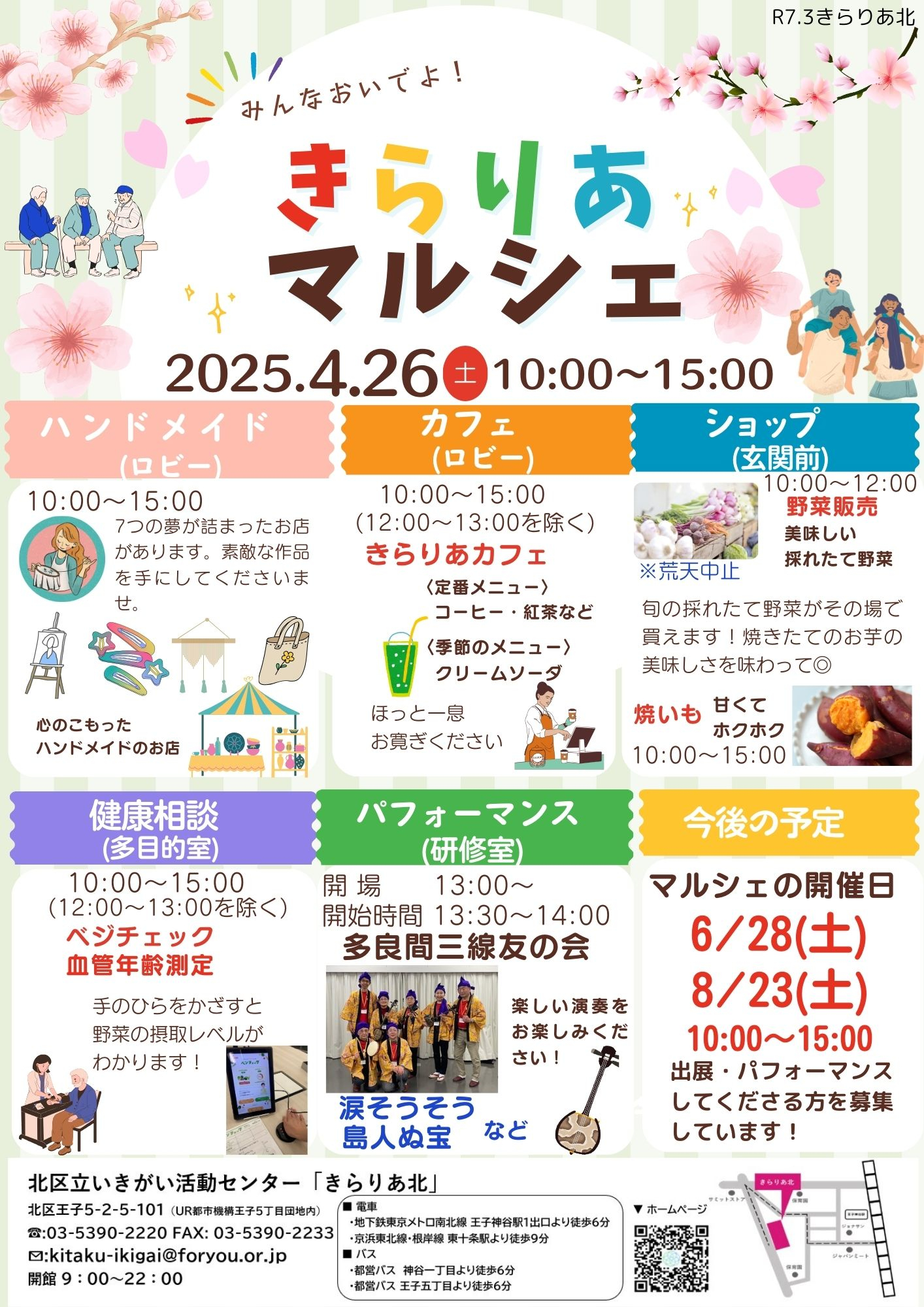 4/26(土)10:00~15:00 「きらりあマルシェ」を開催いたします!
