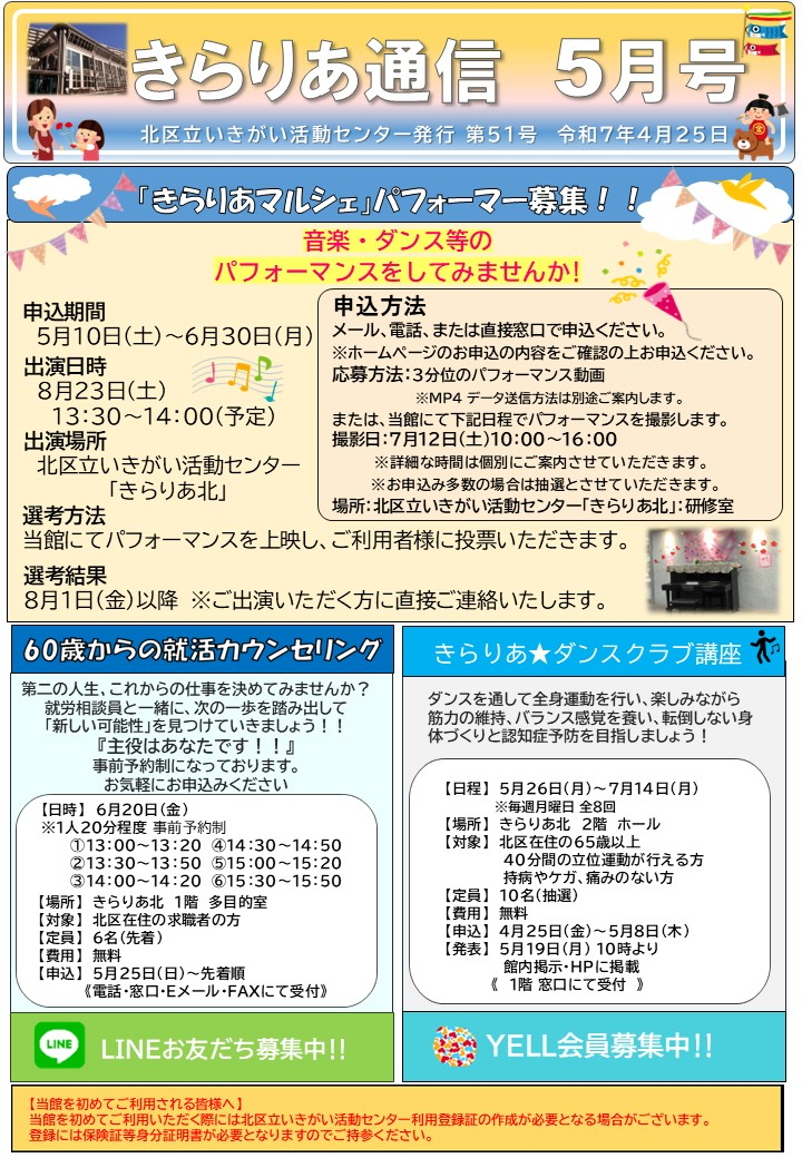 きらりあ通信5月号では、講座開催のお知らせや就労に関するお役立ち情報、求人情報等を掲載しています。