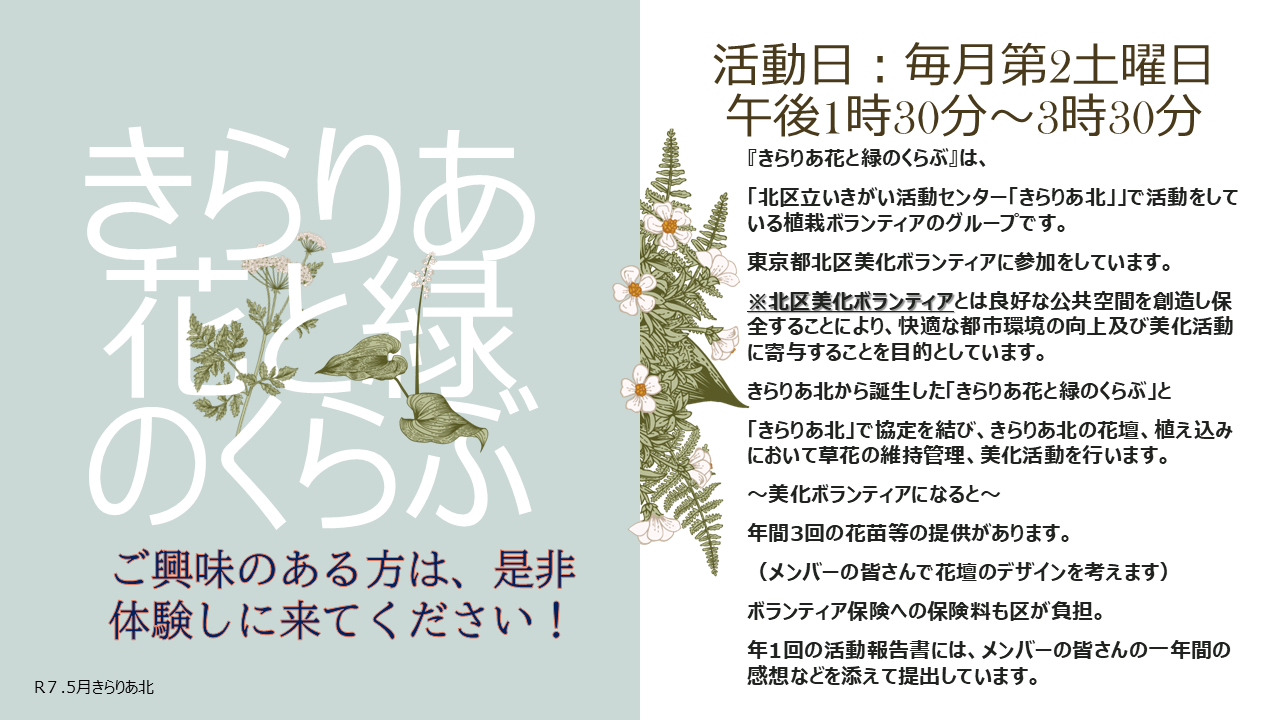 こんにちは!きらりあ北から、植栽グループの活動をご報告いたします。