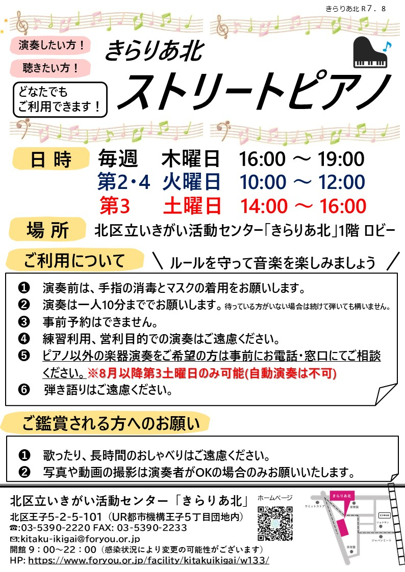 『きらりあ北』で開催されています『ストリートピアノ』開催日に新しく毎月第3土曜日