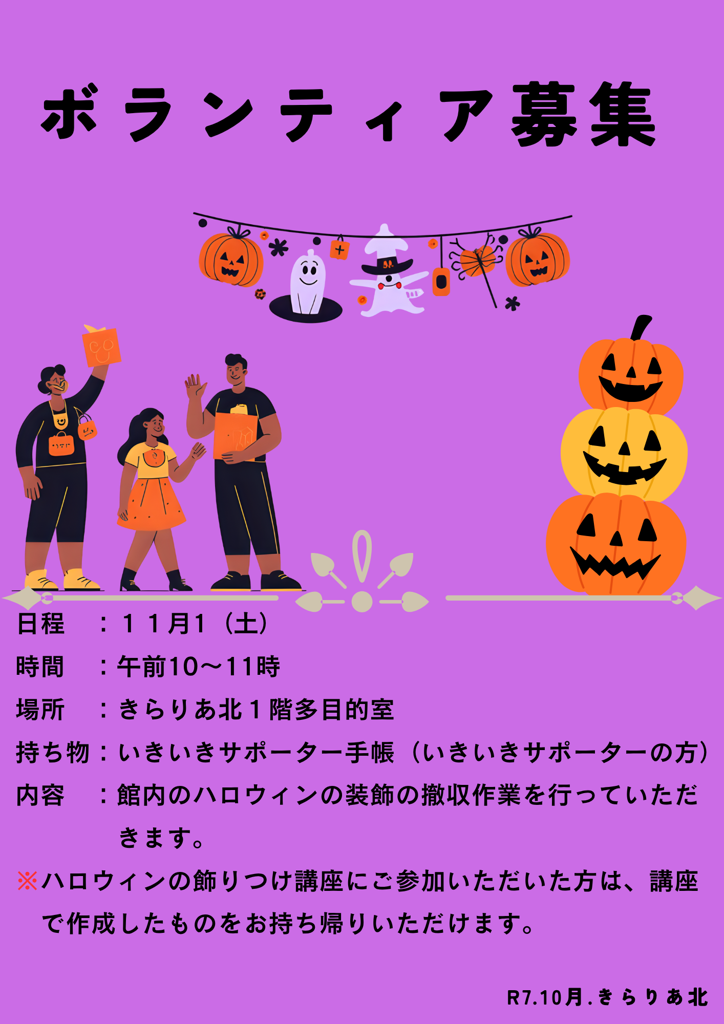 ハロウィンの装飾のお片付けボランティア大募集!!