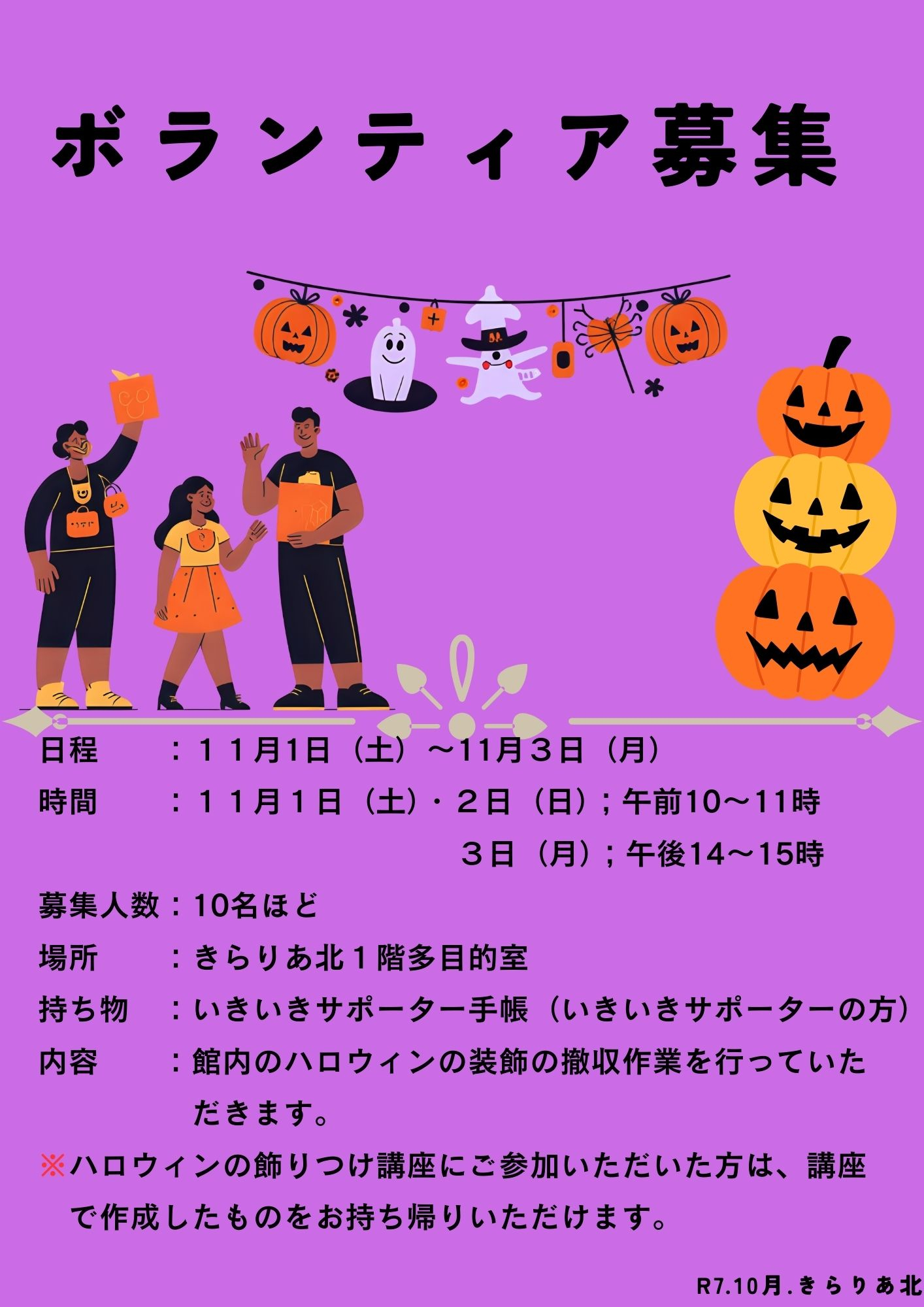 ハロウィンの装飾のお片付けボランティア大募集!!