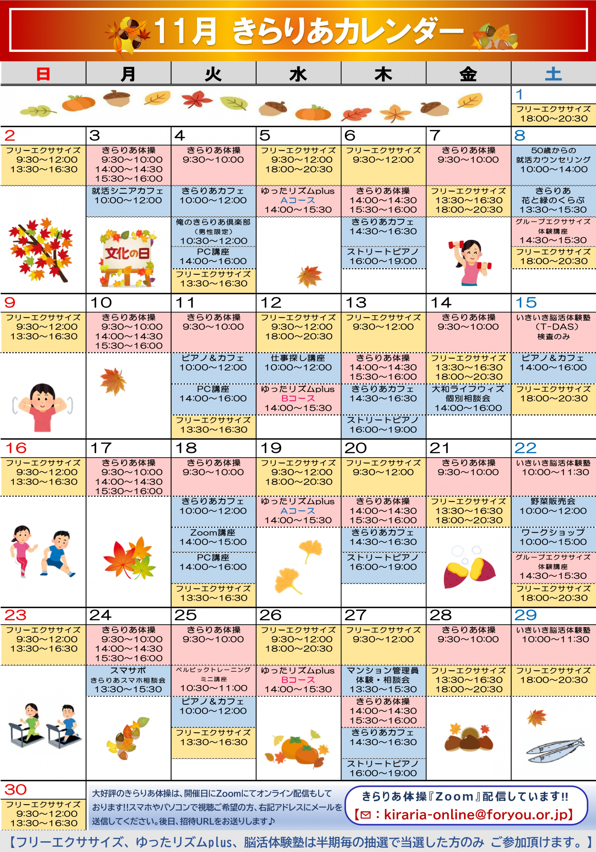 2025.10.25 活動報告(IN) 【介護予防のお知らせ11月号】 Tweet シェアする 【介護予防のお知らせ11月号】 【介護予防のお知らせ】 介護予防のお知らせ11月号をご案内します。 前の記事 2025.10.28 活動報告(IN) 10/27(月)スマホ相談会開催いたしました! 次の記事 2025.10.25 活動報告(IN) 【きらりあ通信11月号】 一覧へ戻る