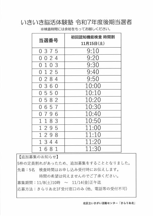 ※結果は館内掲示・ホームページにてお知らせいたします。