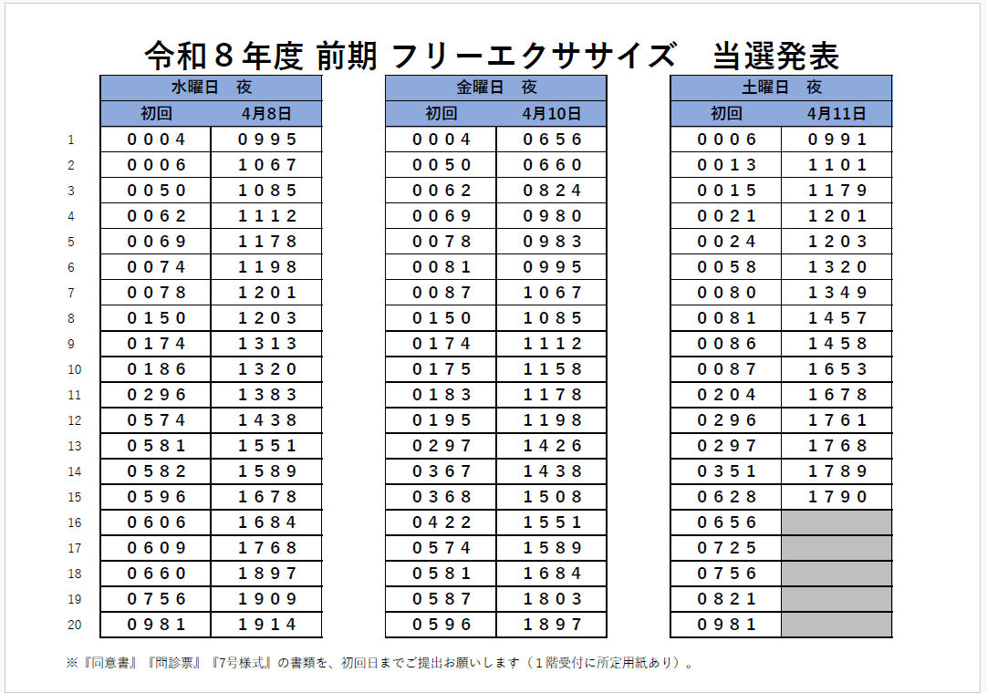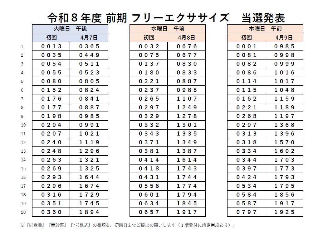 「フリーエクササイズ」の当選結果を発表させていただきます。
