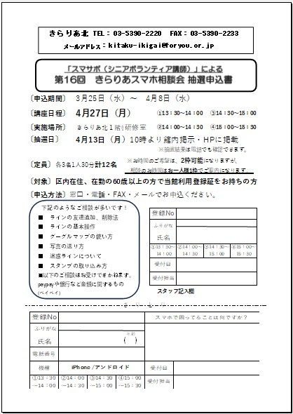 4/27(月) スマホ相談会 参加者募集スタート✨