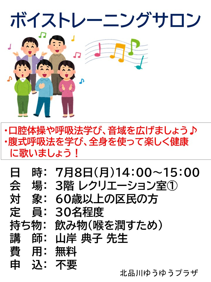 ボイストレーニングサロンを8日(月)に開催いたします。