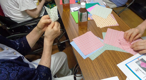 お集まりくださった皆様と一緒に、5枚1組で作る「花」を作成しました!