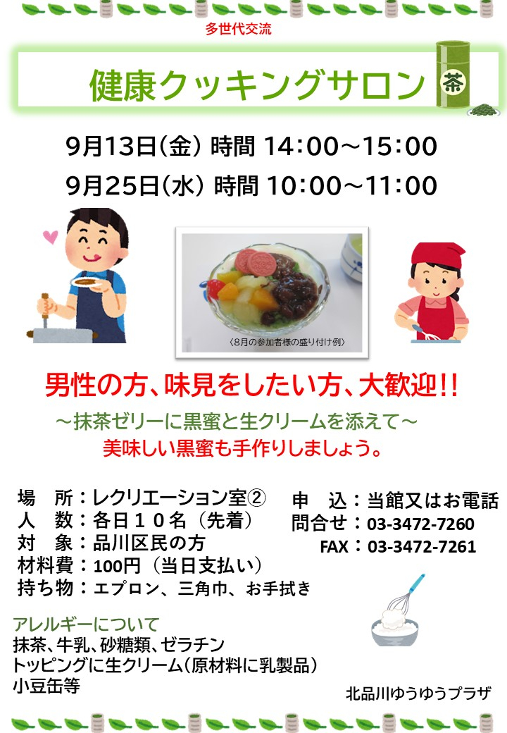 前回、ご好評を頂いた抹茶ゼリーを9月も引き続きご紹介いたします。