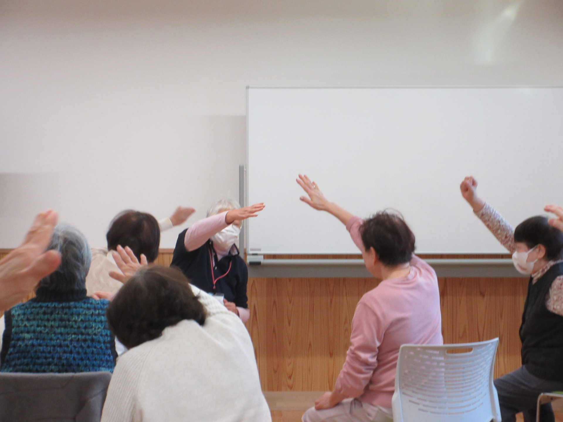30分間でストレッチ 筋トレ 呼吸法とパタカラ体操をやっています。笑いヨガでは楽しく笑いました。