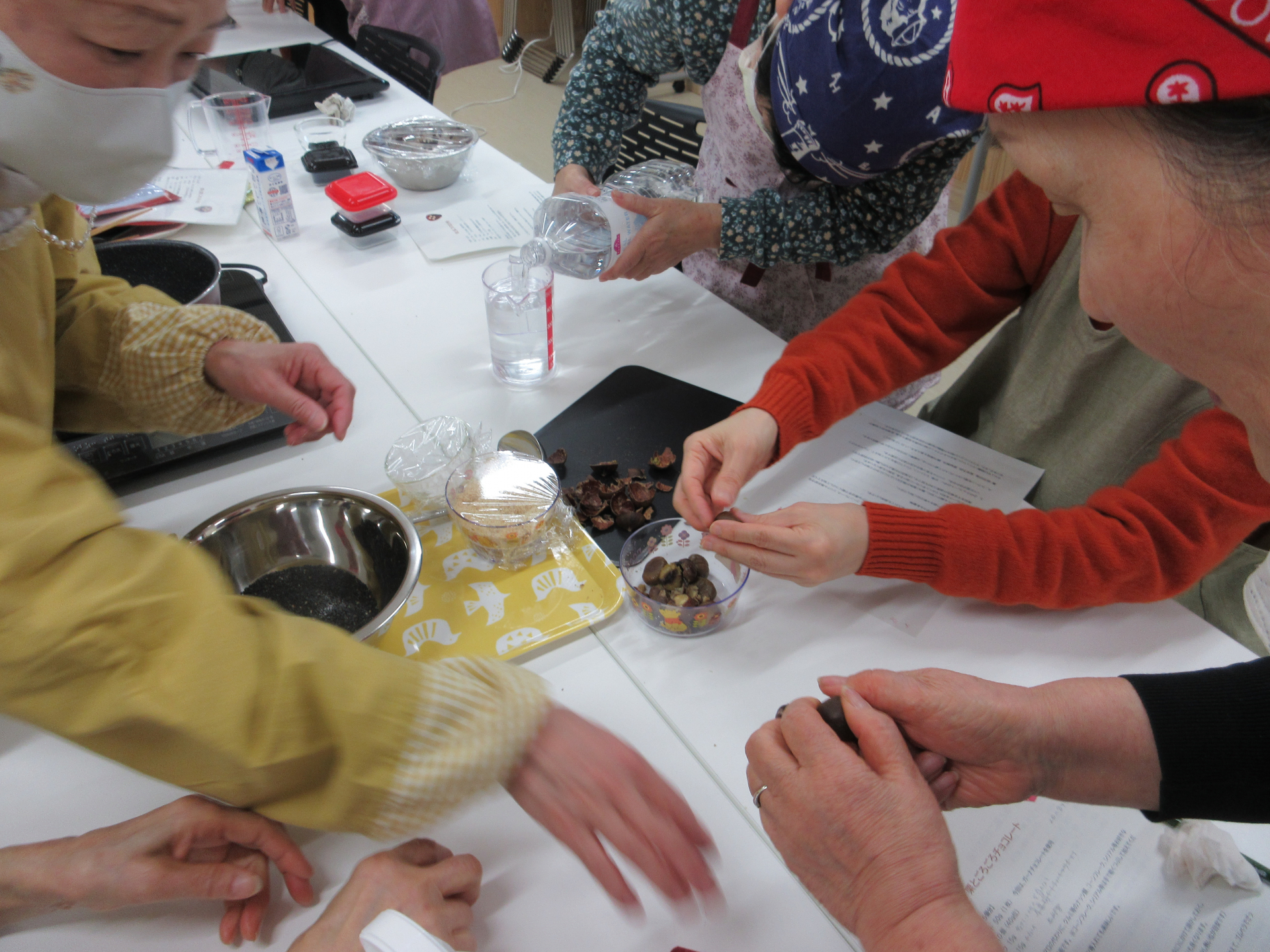 みんなで手分けをしてお汁粉とチョコレートを作ります。