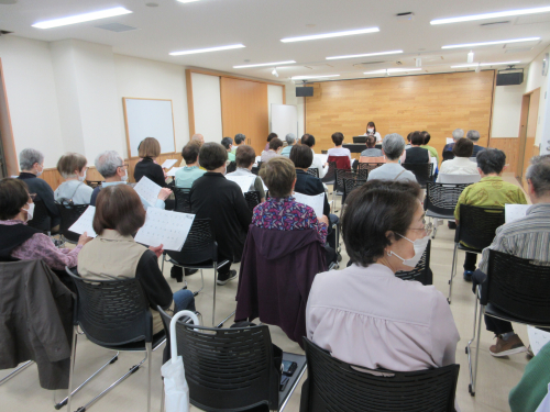 準備運動を兼ねたストレッチをしたあと、リズム体操を2曲実施しました。