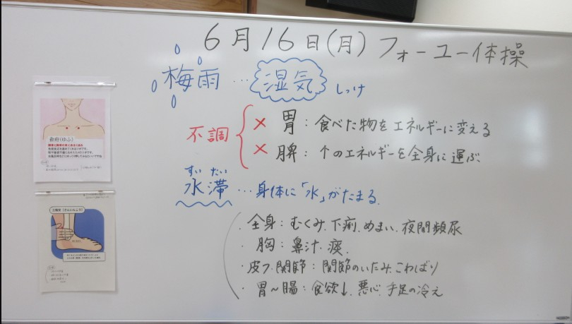 季節の小咄では、「湿気による不調・水滞 (すいたい)」とむくみに効くツボについて、お話をしました。
