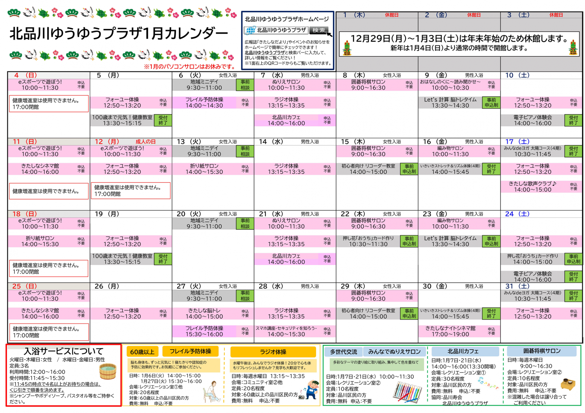 2025.12.25 お知らせ きたしなだより1月号 Tweet シェアする きたしなだより1月号を発行しました! PDF版はコチラからご確認ください #きたしなだより 前の記事 2025.12.25 お知らせ 年末年始休館のお知らせ 次の記事 2025.12.24 お知らせ フェイスラインすっきり!お口の体操 一覧へ戻る