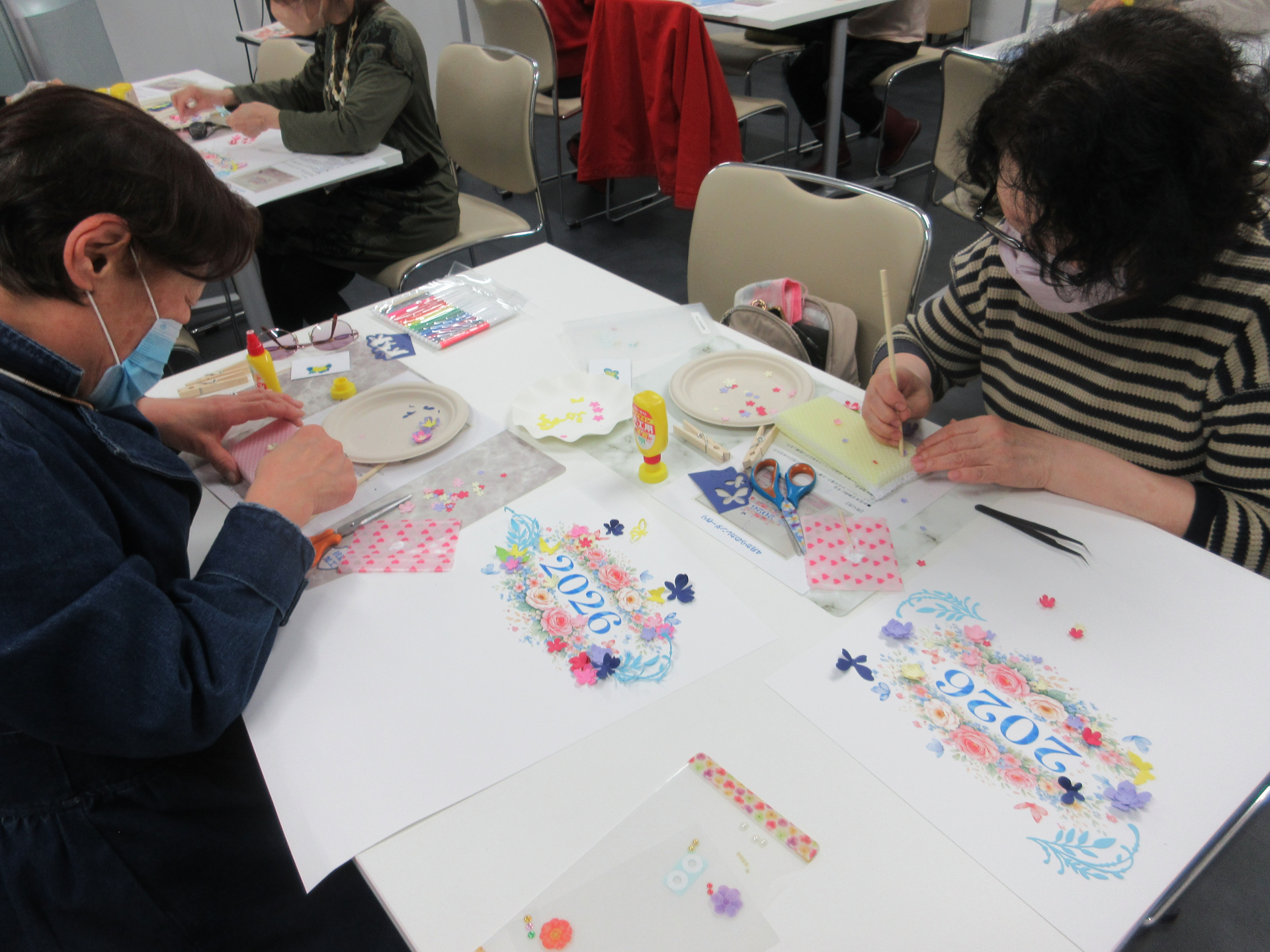 花びらを立体的にしたり、色を重ねたりと、皆さま思い思いに工夫され、個性あふれる作品が