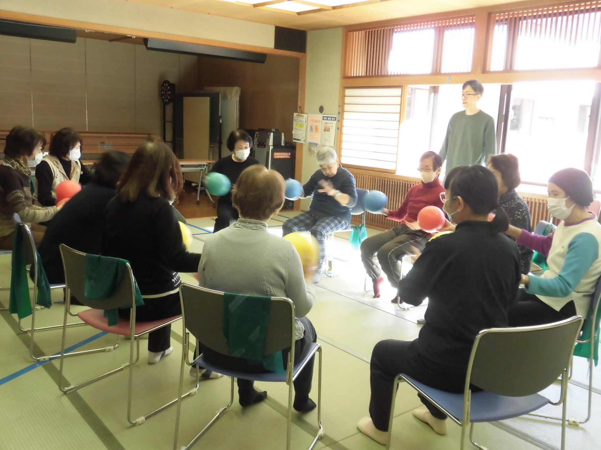 その他にもボールを使ったり、チューブを使ったり…と、みんな笑顔で、あっという間の1時間でした。