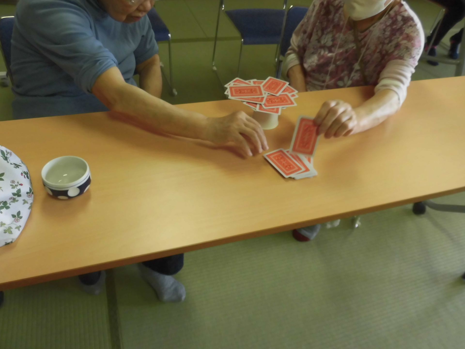 今日は、自分の名前や動物の名前を逆さに言ってみたり、トランプで遊んでみたり…。