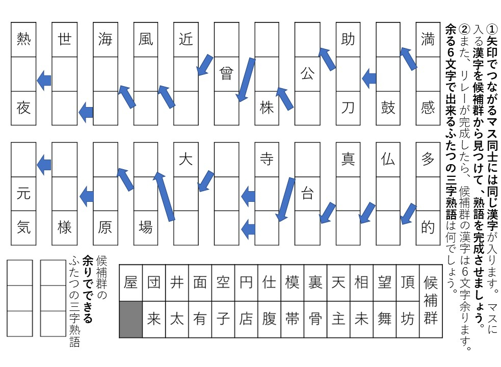 今週開催の脳トレでは、「漢字リレー」にチャレンジしました。