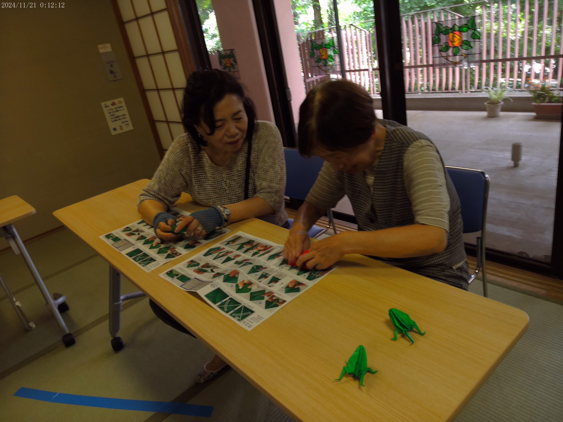 2025.06.06 活動報告 おりがみ広場「かえる」を折りました! Tweet シェアする 6月6日(金)の「おりがみ広場」は、カエルをおりました。 お互い教え合いながら、楽しく折れました。 来月もお待ちしております。 (職員S) #おりがみ広場 前の記事 2025.06.07 活動報告 ポップスコンサート申込受付中! 次の記事 2025.06.06 活動報告 熱中症にご注意ください! 一覧へ戻る