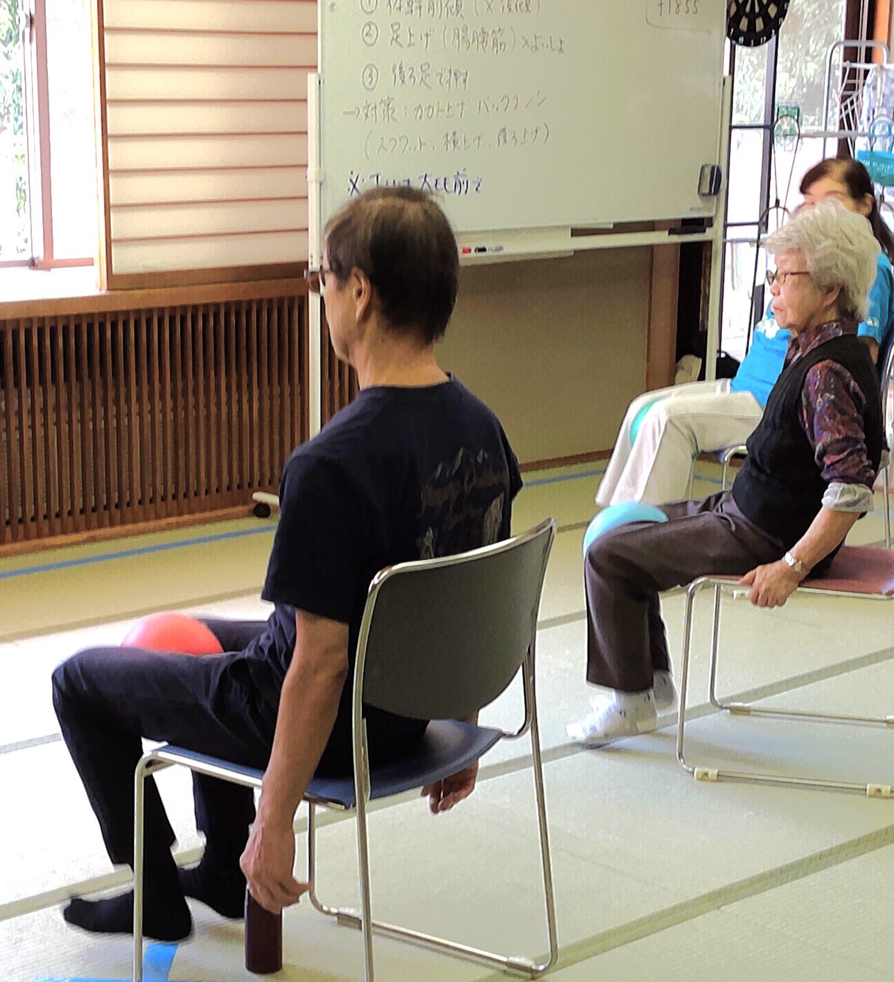 - 椅子に座ったまま足を伸ばす・回すだけでもOK
