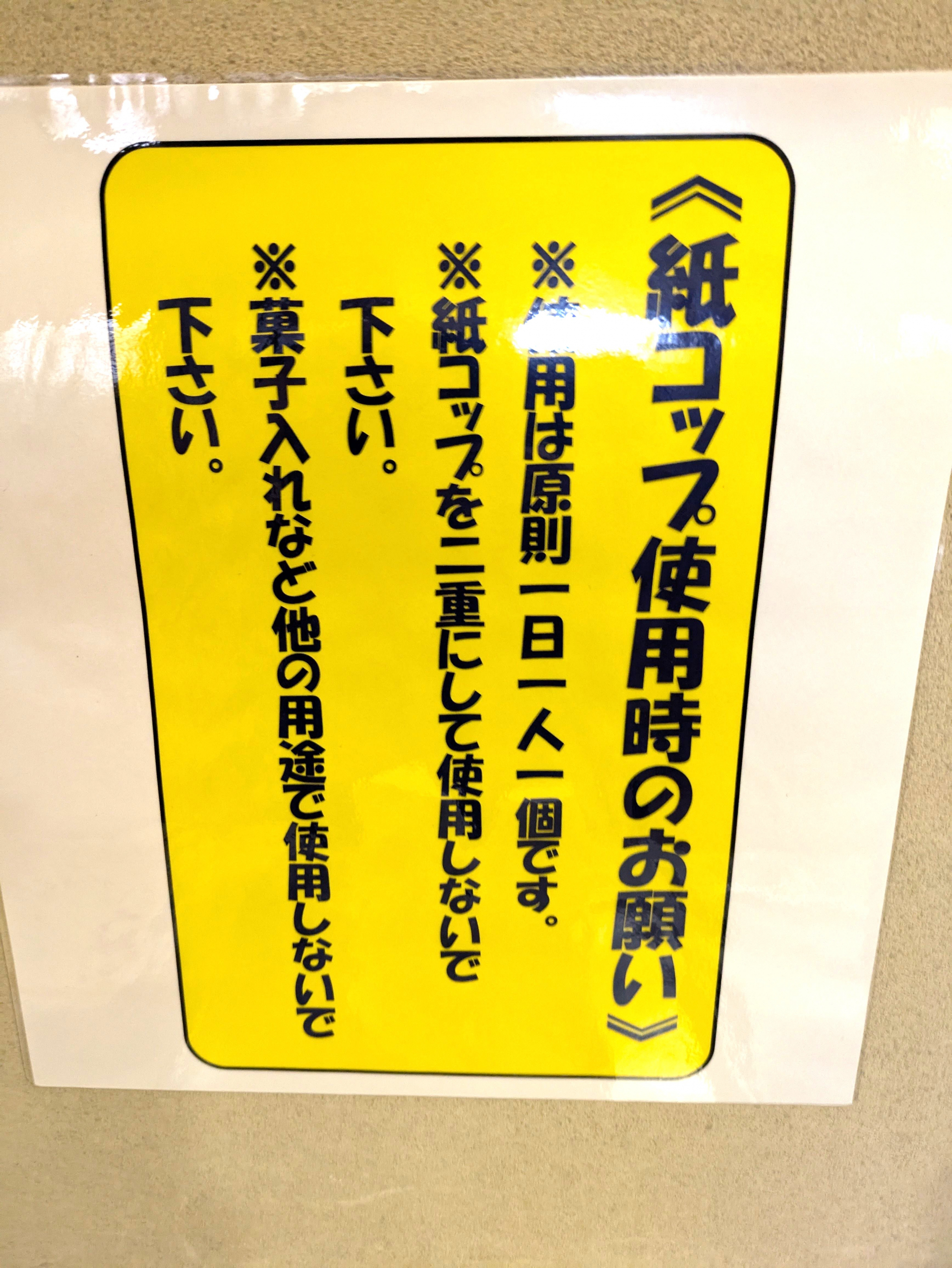 このたび、衛生面の向上を考慮し、館内での飲み物のご提供につきまして 湯のみから紙コップへ変更 させていただくことになりました。