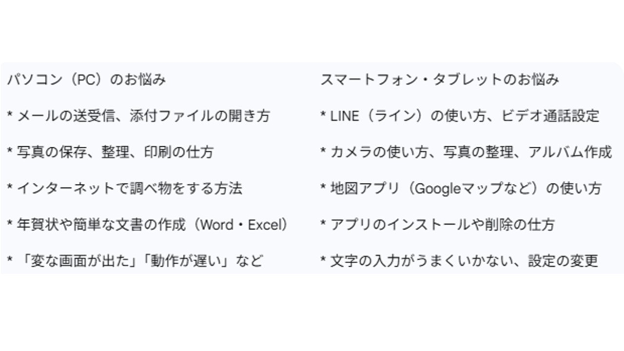 この相談会は、デジタル機器の操作に不安を感じている方を対象とした、個別相談形式のサポート窓口です。