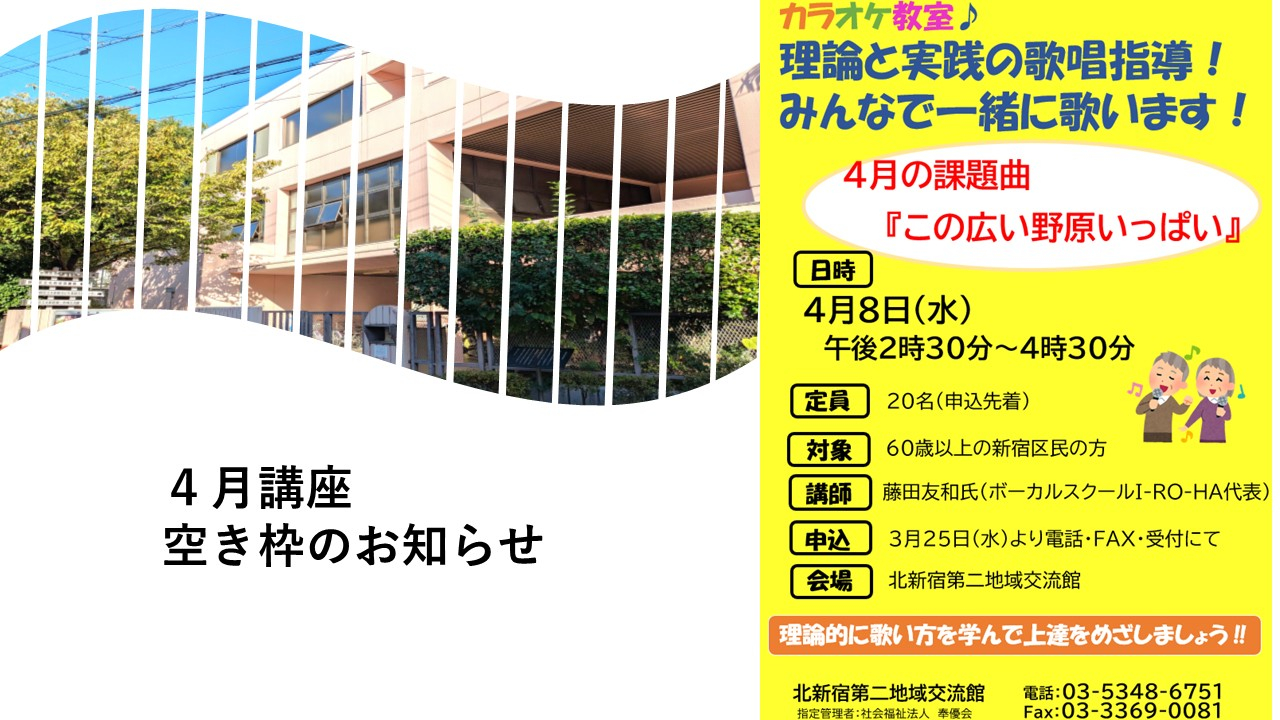 2026.03.25 お知らせ 4月講座お申込み受付中!② Tweet シェアする 前の記事 2026.03.25 お知らせ 4月講座お申込み受付中!③ 次の記事 2026.03.25 お知らせ 4月講座お申込み受付中!① 一覧へ戻る