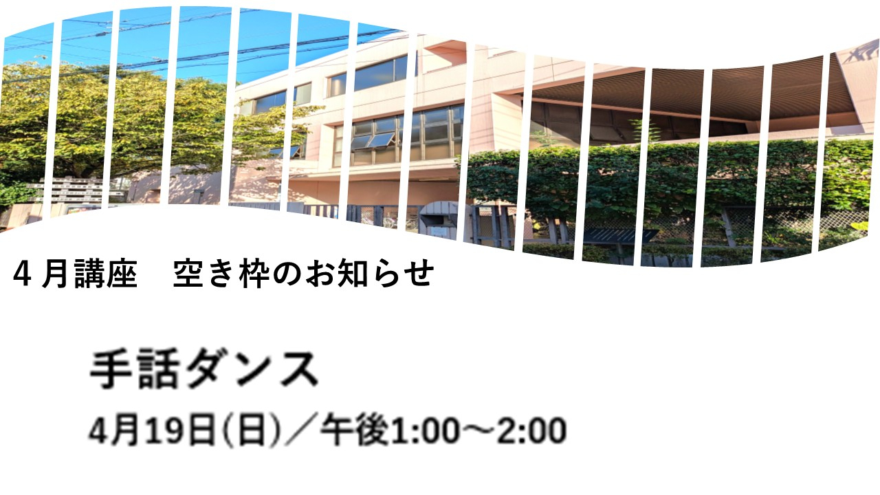 2026.03.25 お知らせ 4月講座お申込み受付中!③ Tweet シェアする 前の記事 2026.03.25 お知らせ 4月講座お申込み受付中!④ 次の記事 2026.03.25 お知らせ 4月講座お申込み受付中!② 一覧へ戻る