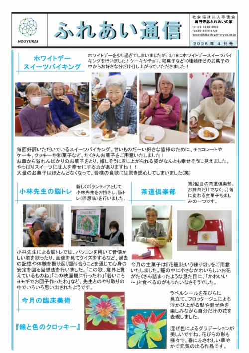 2026.04.30 NEW 【高円寺デイ】鯉の季節♪ 活動報告 #デイサービス #デイ #介護 #福祉 #奉優会 #デイホーム高円寺北ふれあいの家 #こいのぼり #手工芸 2026.04.29 【高円寺デイ】ギターとサックスのセッション~時々フルート~ 活動報告 #デイサービス #デイ #介護 #福祉 #奉優会 #デイホーム高円寺北ふれあいの家 #ギター演奏 #歌の会 2026.04.28 【高円寺デイ】季節の壁飾り~折り紙でアジサイ作り~ 活動報告 #デイサービス #デイ #介護 #福祉 #奉優会 #デイホーム高円寺北ふれあいの家 #壁飾り 2026.04.25 【高円寺デイ】お誕生日会 活動報告(IN) #デイホーム高円寺北ふれあいの家 #みんなで楽しく #誕生日会 #お祝い 2026.04.24 【高円寺デイ】クラシック演奏会~ハープの音色~ 活動報告 #デイサービス #デイ #介護 #福祉 #奉優会 #デイホーム高円寺北ふれあいの家 #クラシック演奏会 #ハープ演奏 2026.04.22 【高円寺デイ】創造力を解き放て‼ 活動報告 #デイサービス #デイ #介護 #福祉 #奉優会 #デイホーム高円寺北ふれあいの家 #臨床美術 2026.04.20 【高円寺デイ】フラワーアレンジメント 活動報告(IN) #イベント #デイホーム高円寺北ふれあいの家 #レクリエーション #フラワーアレンジメント #春の花 2026.04.17 【高円寺デイ】★ふれあい通信・4月豪★ お知らせ #デイサービス #デイ #介護 #福祉 #奉優会 #デイホーム高円寺北ふれあいの家 #ふれあい通信 2026.04.15 【高円寺デイ】理美容サービス 活動報告 #デイサービス #デイ #介護 #福祉 #奉優会 #デイホーム高円寺北ふれあいの家 #ヘアカット #理美容 2026.04.13 【高円寺デイ】今月も元気あふれる「歌声喫茶」。☆彡 活動報告 #デイサービス #デイ #介護 #福祉 #奉優会 #デイホーム高円寺北ふれあいの家 #歌声喫茶 2026.04.10 【高円寺デイ】カレンダー制作~5月分編~ 活動報告 #デイサービス #デイ #介護 #福祉 #奉優会 #デイホーム高円寺北ふれあいの家 #カレンダー制作 2026.04.08 【高円寺デイ】茶道サークル~3回目!~ 活動報告 #デイサービス #デイ #介護 #福祉 #奉優会 #デイホーム高円寺北ふれあいの家 #茶道サークル 2026.04.06 【高円寺デイ】夕方のバス待ち時間に 活動報告(IN) #デイホーム高円寺北ふれあいの家 #個別体操 #看護師 #空き時間 2026.04.04 【高円寺デイ】午後の手工芸~フロアー内の飾り~ 活動報告 #デイサービス #デイ #介護 #福祉 #奉優会 #デイホーム高円寺北ふれあいの家 #手工芸 2026.04.02 【高円寺デイ】お花見ドライブ~最終日~ 活動報告 #デイサービス #デイ #介護 #福祉 #奉優会 #デイホーム高円寺北ふれあいの家 #お花見ドライブ 1 2 3 … 38